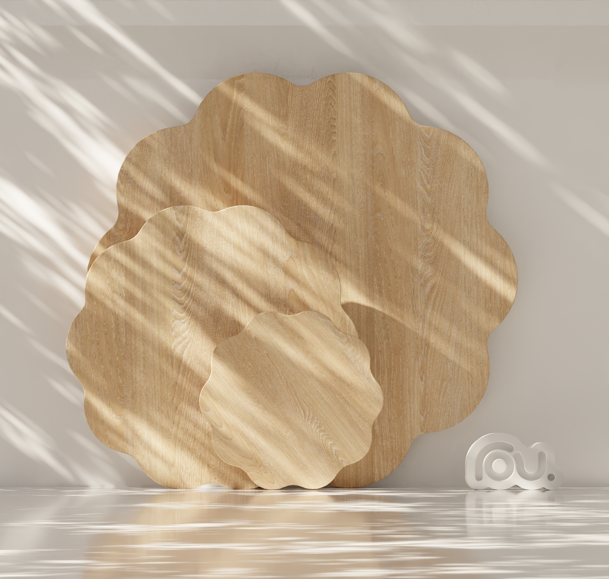 The Cloud Serving Boards Trio includes three handcrafted solid oak boards designed to nest perfectly together — each one shaped with soft, organic curves inspired by rolling clouds.